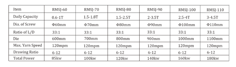 The machine can produce different size of PP,HDPE virgin or recycled split-film, flat film, cable filler which is widely used in binding twine, packing twine, plastic rope. The machine has the characteristics of long life span, easy operation, easy maintenance. The products have high strength which can up to 5g/d.