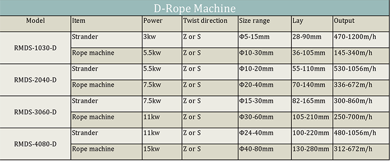 The machine can twist different size of HDPE,PP monofilament,PP tape yarn,PP split-film,Polyester yarn,Nylon yarn,Cotton yarn, Sisal,Jute to 3,4 or 6 strands rope.It is equipped with rope technological function of electronically adjusting.The machine integrates rope making and finishing,has the characteristics of simple structure,easy maintenance,economic applicability.